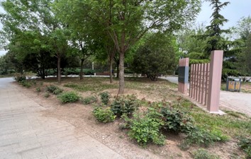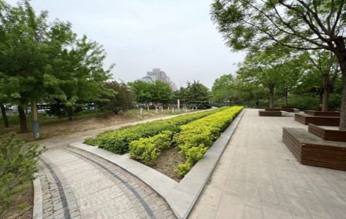 黄庄绿地公园位于京九高铁线南侧,东至鲁谷东街,西至鲁谷大街,总面积为2.58公顷。公园配有健康步道,开放活动场地等,同时为了通行人员休息,设置了休息座椅,公园保留了原有树木,形成了较好的林下活动空间。