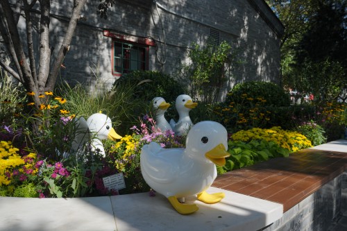 100 个落地微花园亮点纷呈:德胜街道“蔬香花园”以共享、社交、体验为理念,打造可食用微花园,形成社区社交、亲子体验及自然教育的复合型空间。东城区奥林匹克社区体育文化中心的“屋顶花园”,兼具生态、景观和休闲实用价值,为同类屋顶绿化项目提供可借鉴的范例。“周末花市花园”以“绿化 + 便民消费”为核心,发挥广阳谷城市森林公园“公园 + 地铁站 + 城市微空间”融合场景,将生态景观与市民周末花市消费需求深度融合。由人行道边的带状绿地改建的“82 米微笑花园”,用连续花带串联街角,打造社区情绪疗愈空间,将街边消极空间转化为“情绪充电站”。地坛南门地块以竹子种植和竹产品应用为主题,打造“以竹代塑”主题花园,彰显生态环保理念。白塔寺片区花园延续历史街区风貌,保留胡同内原有景观,让居民和游客感受到历史记忆。南新仓大厦花园融入皇家粮仓文化主题,成为讲述城市故事的新窗口。东四北大街消防站门前的微花园,创作“小火苗”“小水花”景观小品,强化消防无小事的社会共识。在烤鸭店附近绿地改造的“福鸭花园”,以萌趣雕塑搭配街边座椅,深度融合“花园+餐饮”场景。东四街面紧邻餐厅之地,以“小而精”构景,分层配植多彩花卉,既保障餐厅私密性,又用亮眼景观吸引路人,为餐饮引流,打造活力花园商圈场景。这些充满巧思的设计,让微花园不仅是“景观”,更成为承载休憩、社交、亲子互动的“生活空间”。
