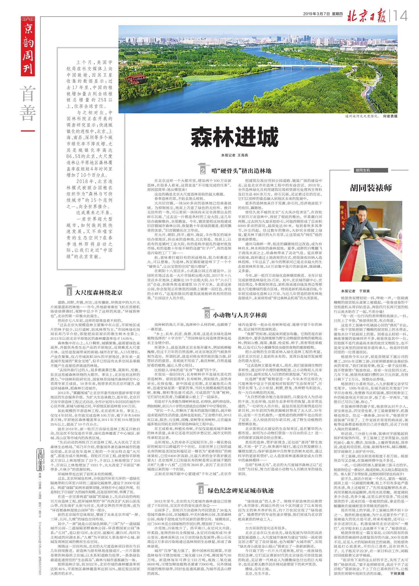 2018年,北京造林模式被联合国粮农组织作为“森林与可持续城市”的15个范例之一,向全世界推介。